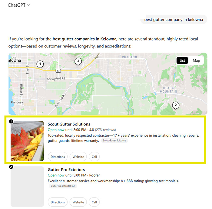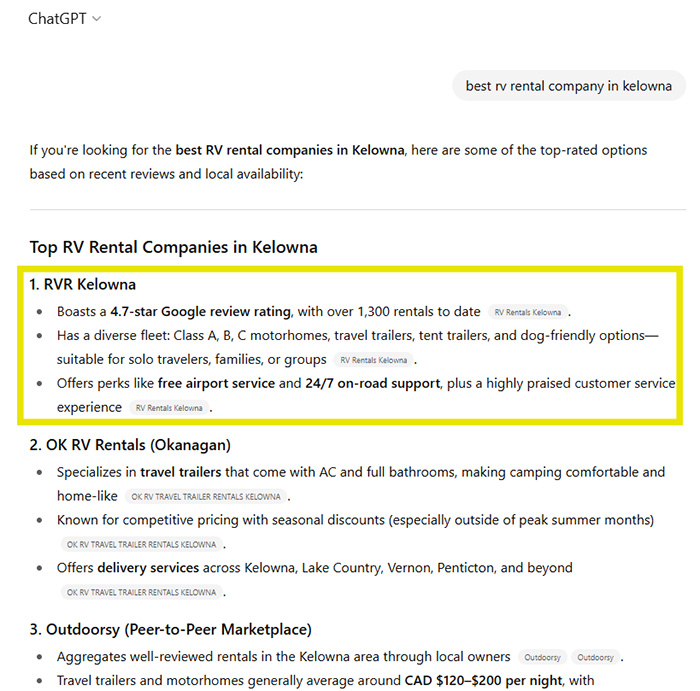 See how our clients are showing up in ChatGPT. Please feel free to check ChatGPT yourself. It works!